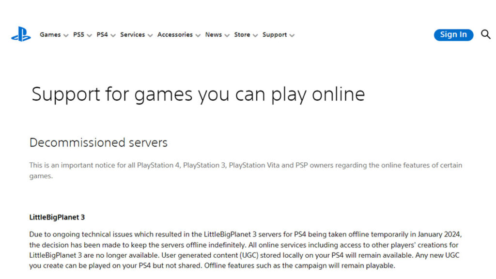 LittleBigPlanet 3’s server shutdown could also trigger a wider debate in the gaming industry about the durability of online games. When game companies commit to long-term support for their games, gamers expect that service to continue.