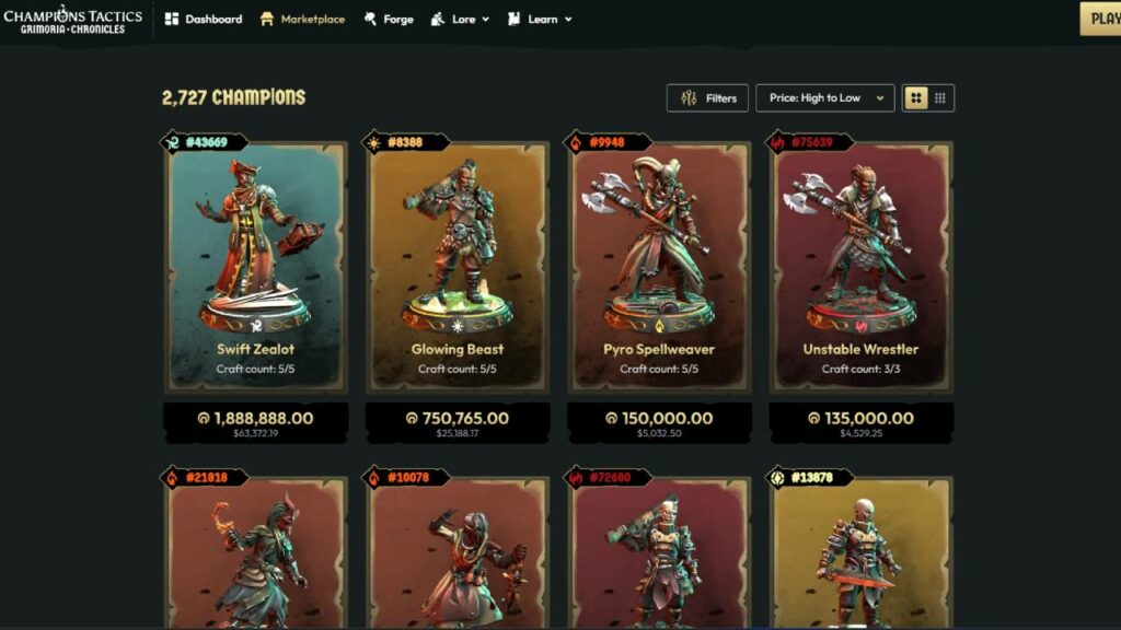 The game also has an NFT part. Champions are the NFTs of the game, which are associated with the Oasys blockchain. To earn champions, the first option is to play the game and the second option is to buy the champion from the in-game marketplace. Champions Tactics: Grimoria Chronicles, the cheapest NFT champion costs 7 USD, while the most expensive character costs approximately 63,000 USD. These prices include a 6 percent commission that Ubisoft receives under the name of royalties. Currently, there are approximately 2,700 active listings in the game.