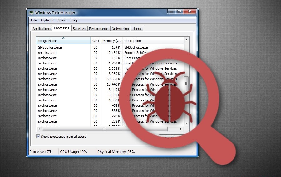 Virus programs typically occupy computer processors by using them at high capacity. By checking the running applications through the Task Manager, you can determine how much each consumes. If Svchost.exe is virus-related, it will excessively occupy the processors, and the username in the window will be different from your other running programs. You can remove infected applications from your system using spyware prevention software.